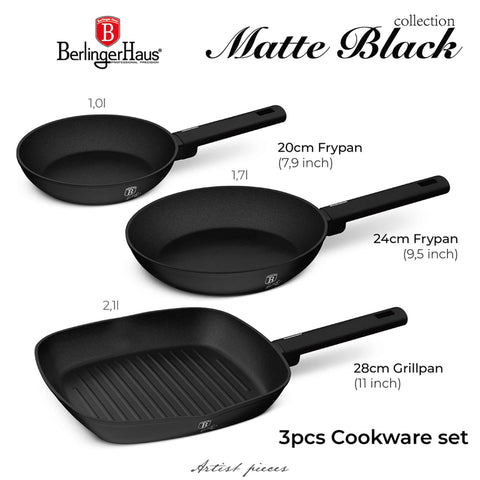 Sartén de 20 x 4,5 cm (1,0 L) de diámetro Sartén de 24 x 4,8 cm (1,7 L) de diámetro Parrilla de 28 x 4,1 cm (2,1 L) de diámetro |