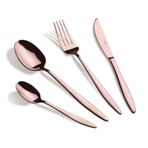 Juego De Cubiertos De 24 Piezas Con Recubrimiento Pvd De Oro Rosa Pulido Espejo