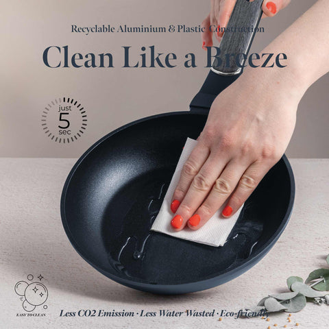 • Stay cool ergonomic soft touch handle with silver insert and gray wood color